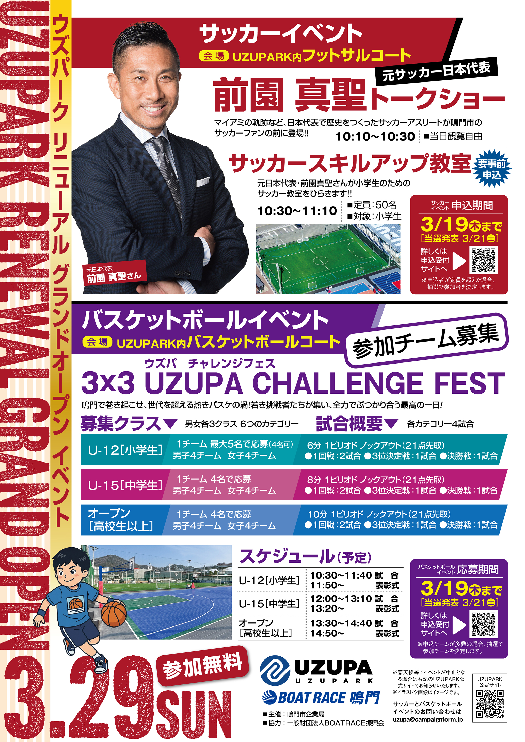ウズパークのリニューアルを記念し、一流アスリートをゲストに迎えてスポーツイベントを