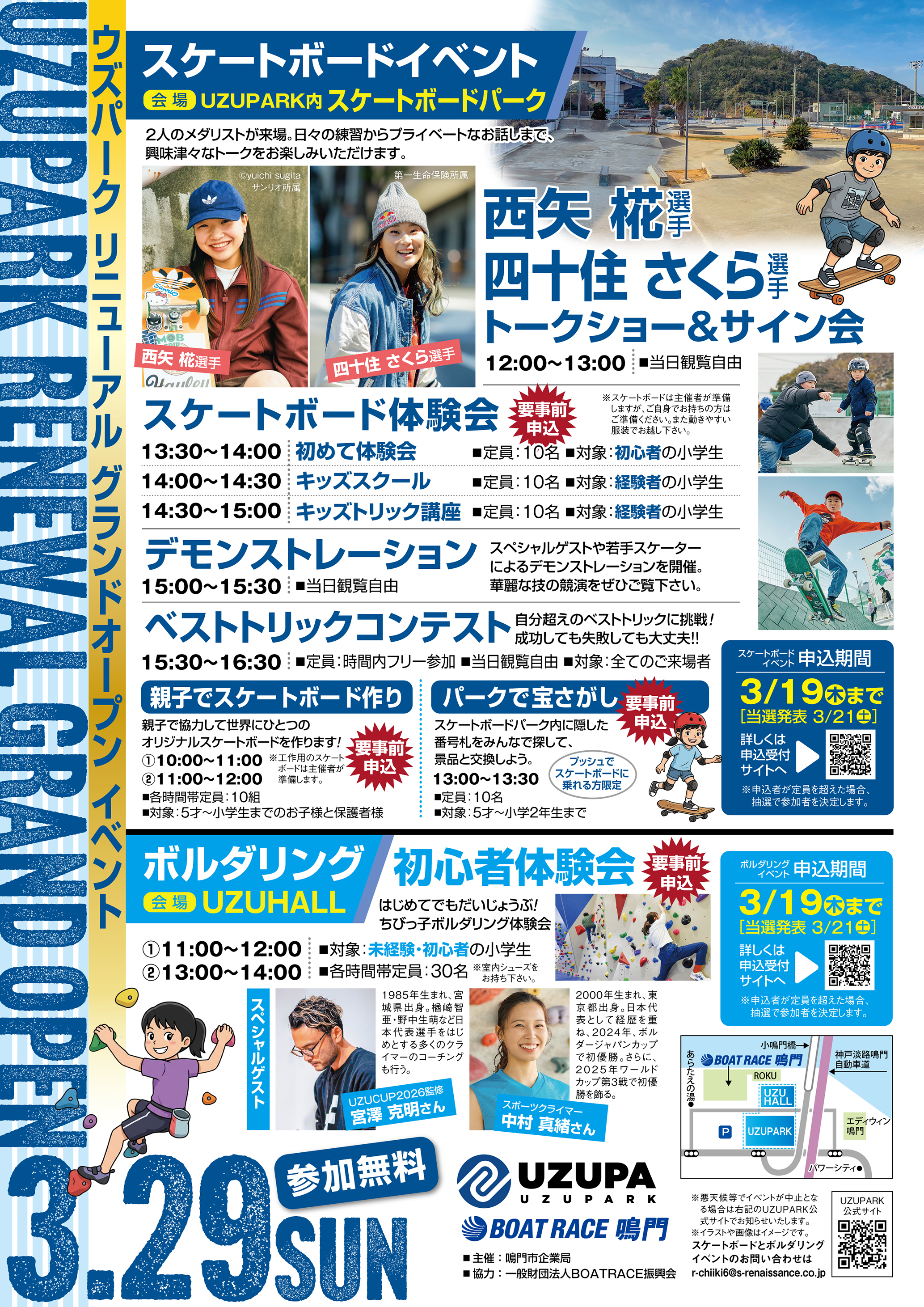 ウズパークのリニューアルを記念し、一流アスリートをゲストに迎えてスポーツイベントを