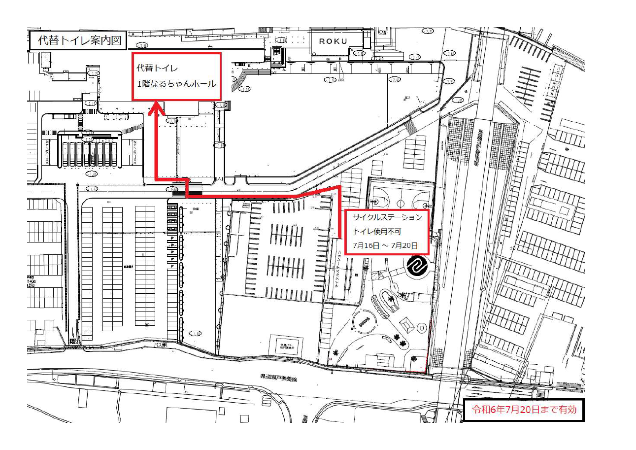 上記の期間は本場のなるちゃんホールのトイレを開放しておりますので、そちらをご利用ください。